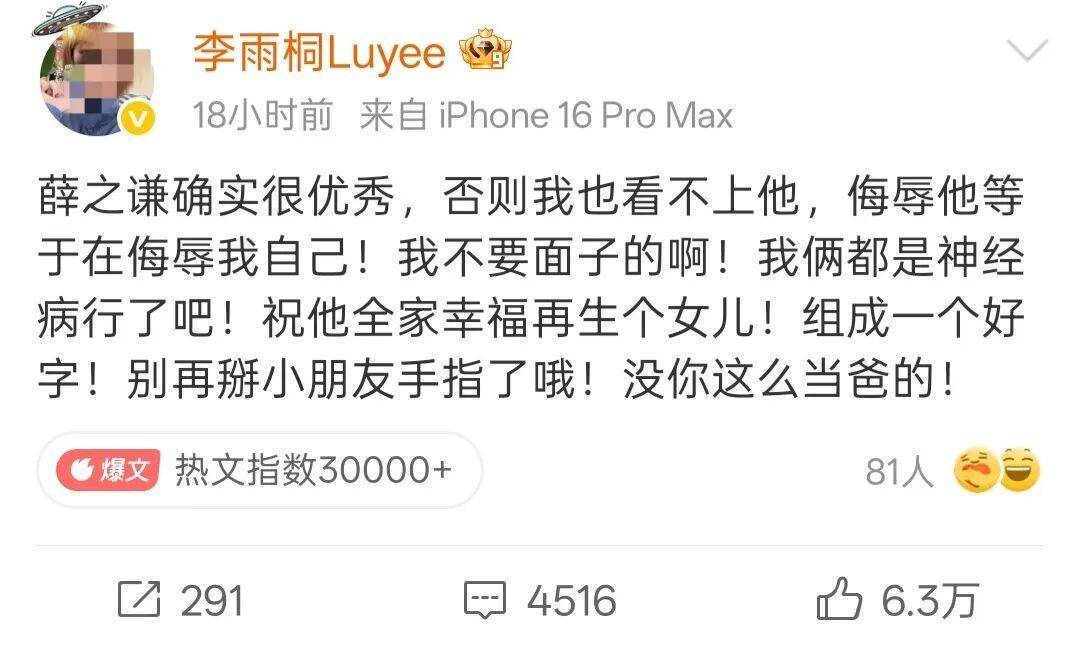 连续锤了薛之谦多条之后,李雨桐的口风急变。