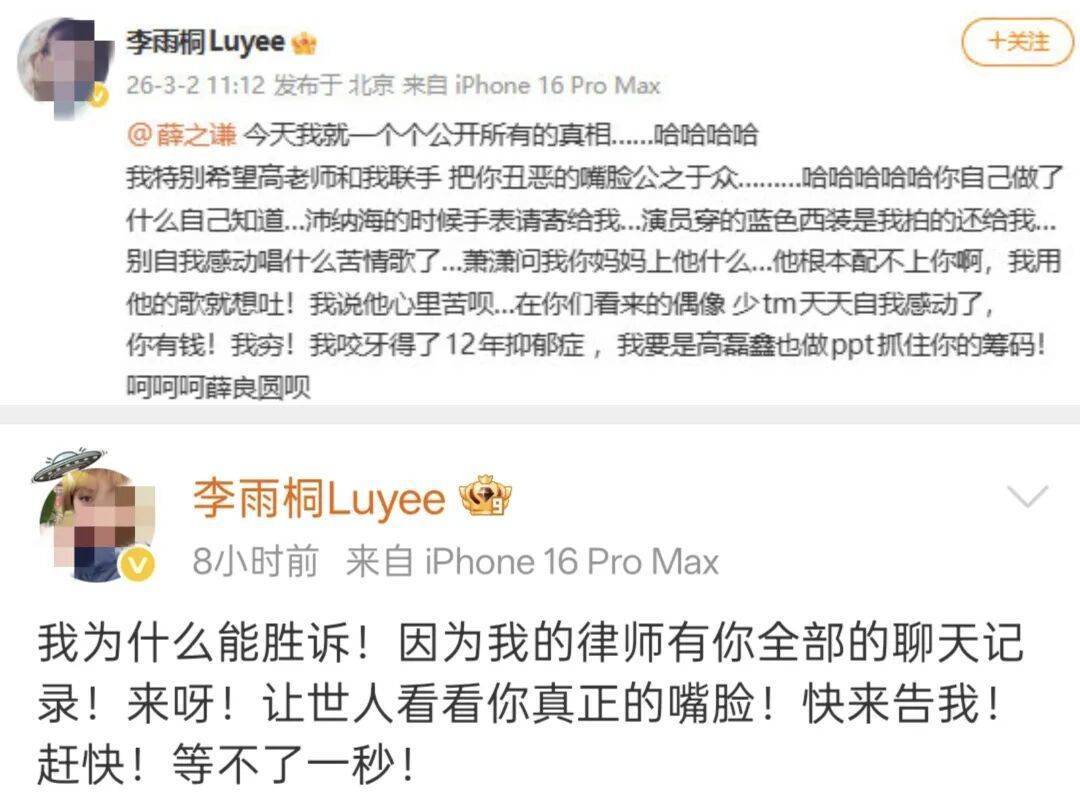 3月2日,薛之谦前女友李雨桐公开喊话薛之谦,称: