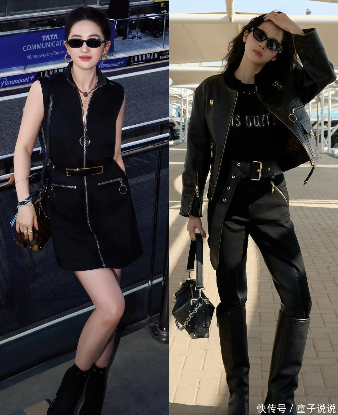阿布扎比 F1 赛事的看台比赛道还热闹!各路名人扎堆亮相,直接把体育赛场变成潮流竞技场,真是让人开眼界~ 24 岁的欧阳娜娜这次太亮眼了!一身黑皮夹克配工装裤,厚底靴踩出满满气场,那头羊毛卷蓬松又随性。最绝的是她拎的 LV 机车包,居然是 2026 早春未发售的新款,时尚资源也太顶了吧!生图怼脸拍完全没在怕,皮肤细腻得看不到毛孔,青春气息扑面而来,网友都夸 “这状态绝了”!